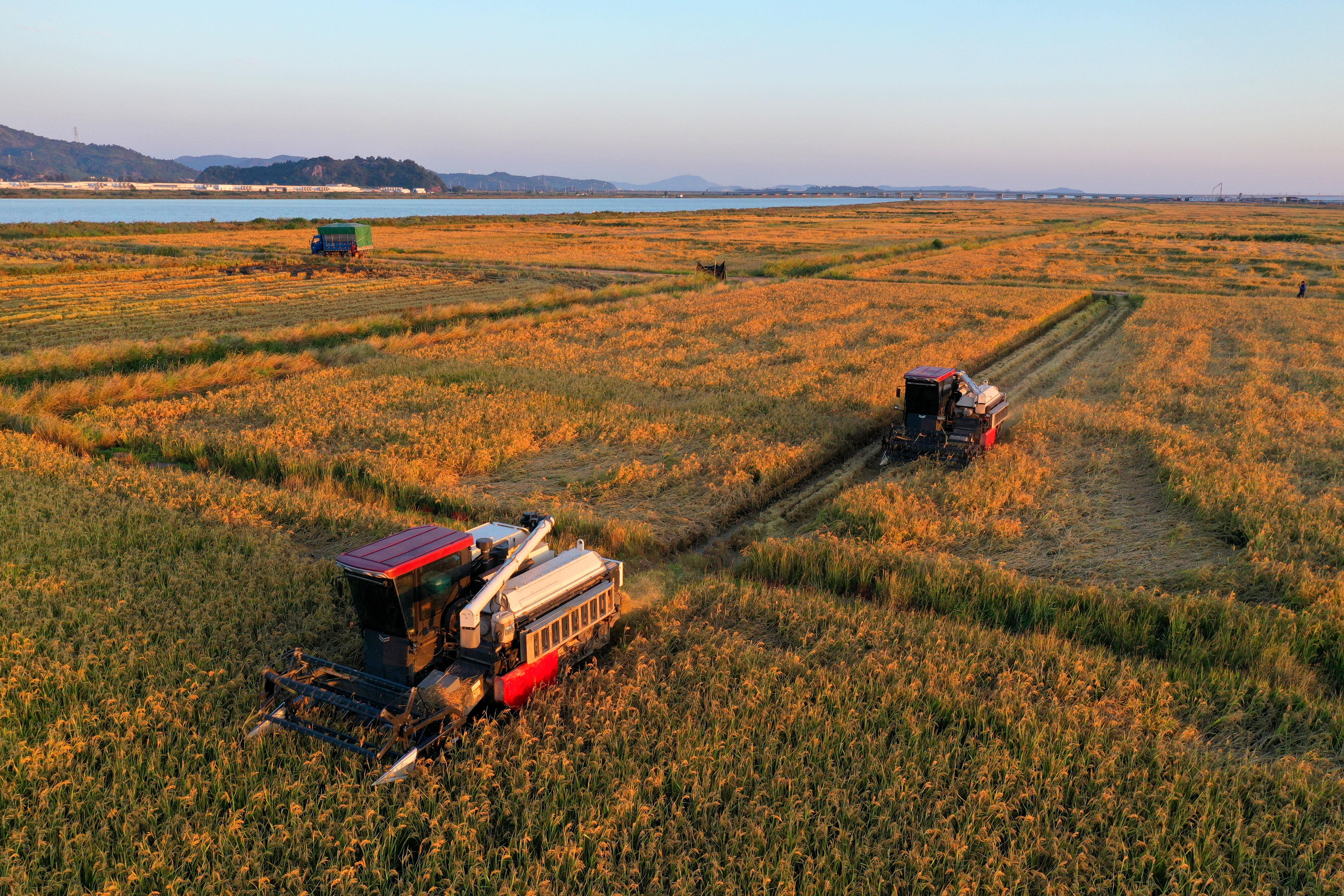深秋時(shí)節(jié),浙江省玉環(huán)市漩門三期智慧農(nóng)業(yè)示范基地的海水稻迎來(lái)豐收,農(nóng)民駕駛收割機(jī)忙著收割。