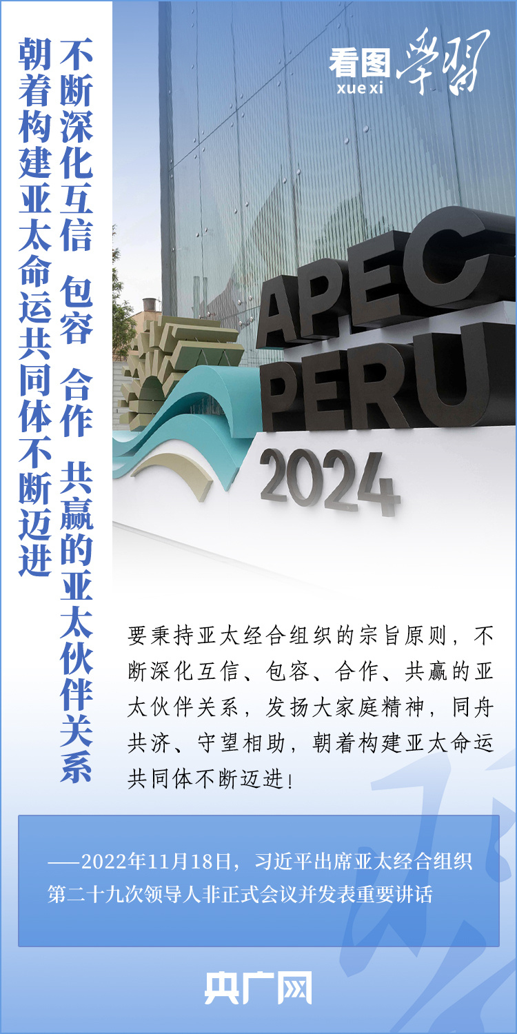 亞太經(jīng)合組織(APEC)是亞太地區(qū)層級最高、領(lǐng)域最廣、最具影響力的經(jīng)濟(jì)合作機(jī)制。11月13日至17日,習(xí)近平主席赴利馬出席亞太經(jīng)合組織第三十一次領(lǐng)導(dǎo)人非正式會議并對秘魯進(jìn)行國事訪問。從“亞太夢想”到“APEC方式”,從“亞太伙伴關(guān)系”到“亞太命運(yùn)共同體”……2013年以來,習(xí)近平主席出席或主持歷次APEC領(lǐng)導(dǎo)人非正式會議,就全球及地區(qū)形勢、亞太區(qū)域合作、APEC未來發(fā)展等一系列重大問題闡釋中國主張,推動不斷深化互信、包容、合作、共贏的亞太伙伴關(guān)系,建設(shè)開放、活力、強(qiáng)韌、和平的亞太共同體。一起來學(xué)習(xí)!