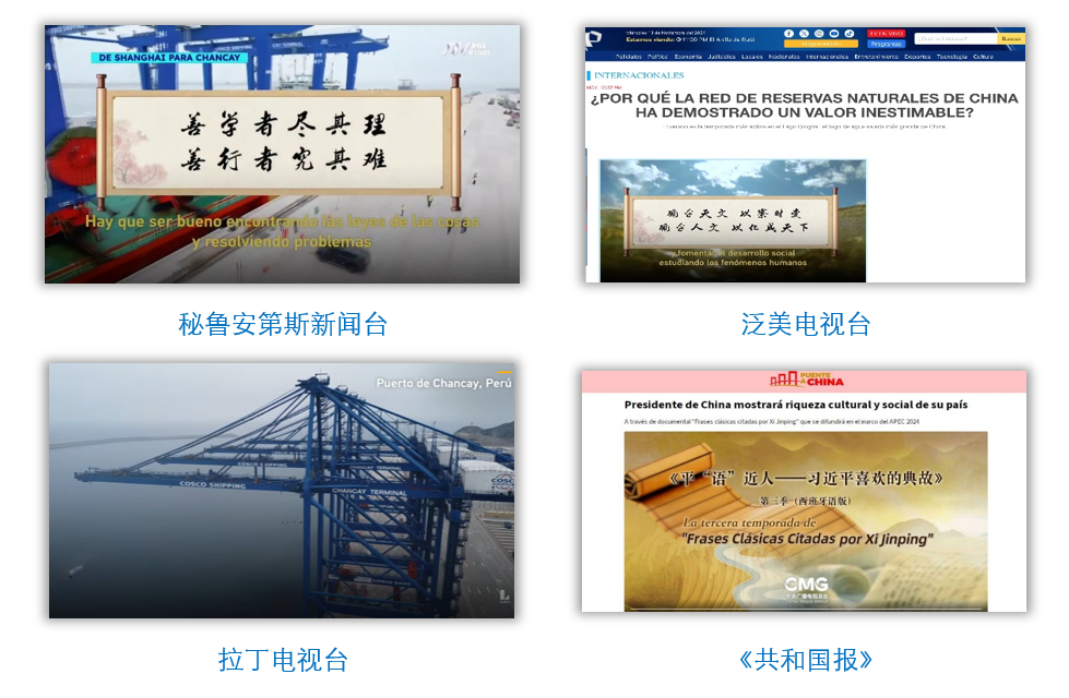 在中國國家主席習(xí)近平應(yīng)秘魯共和國總統(tǒng)博魯阿爾特邀請,赴利馬出席亞太經(jīng)合組織第三十一次領(lǐng)導(dǎo)人非正式會議并對秘魯進(jìn)行國事訪問之際,由中國中央廣播電視總臺制作的《平“語”近人——習(xí)近平喜歡的典故》第三季(西班牙語版),將于當(dāng)?shù)貢r間11月14日起在秘魯國家廣播電視臺、秘魯電視聯(lián)播網(wǎng)、秘魯廣播節(jié)目集團(tuán)電視端等多平臺落地播出。當(dāng)?shù)囟嗉抑髁髅襟w對節(jié)目落播進(jìn)行預(yù)告,引發(fā)秘魯各界普遍期待和廣泛關(guān)注。
