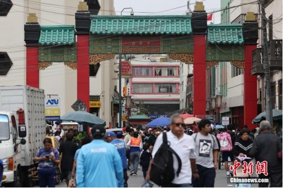 當(dāng)?shù)貢r間11月12日,秘魯首都利馬,唐人街“中華坊”牌樓。中新社記者 盛佳鵬 攝