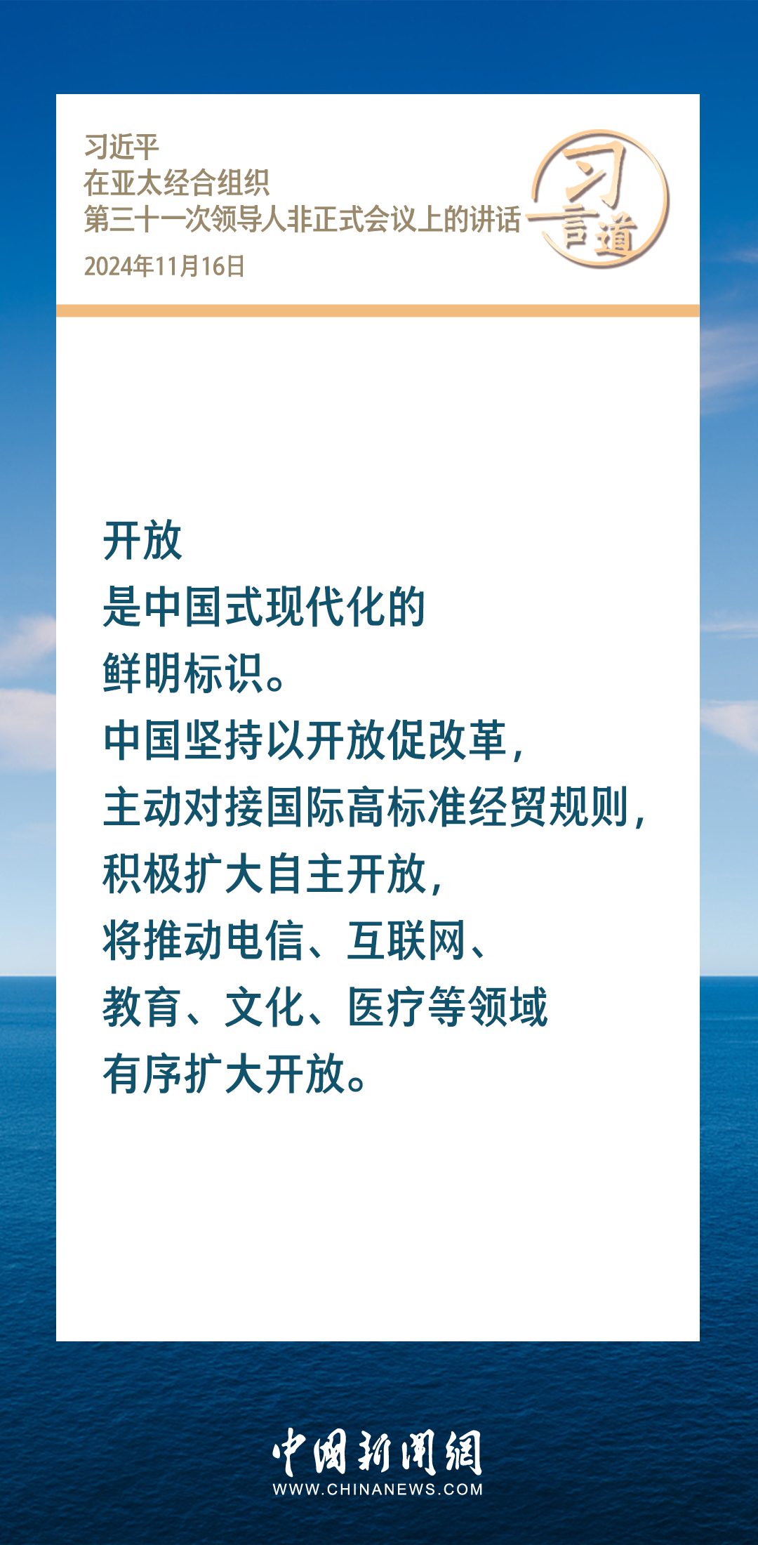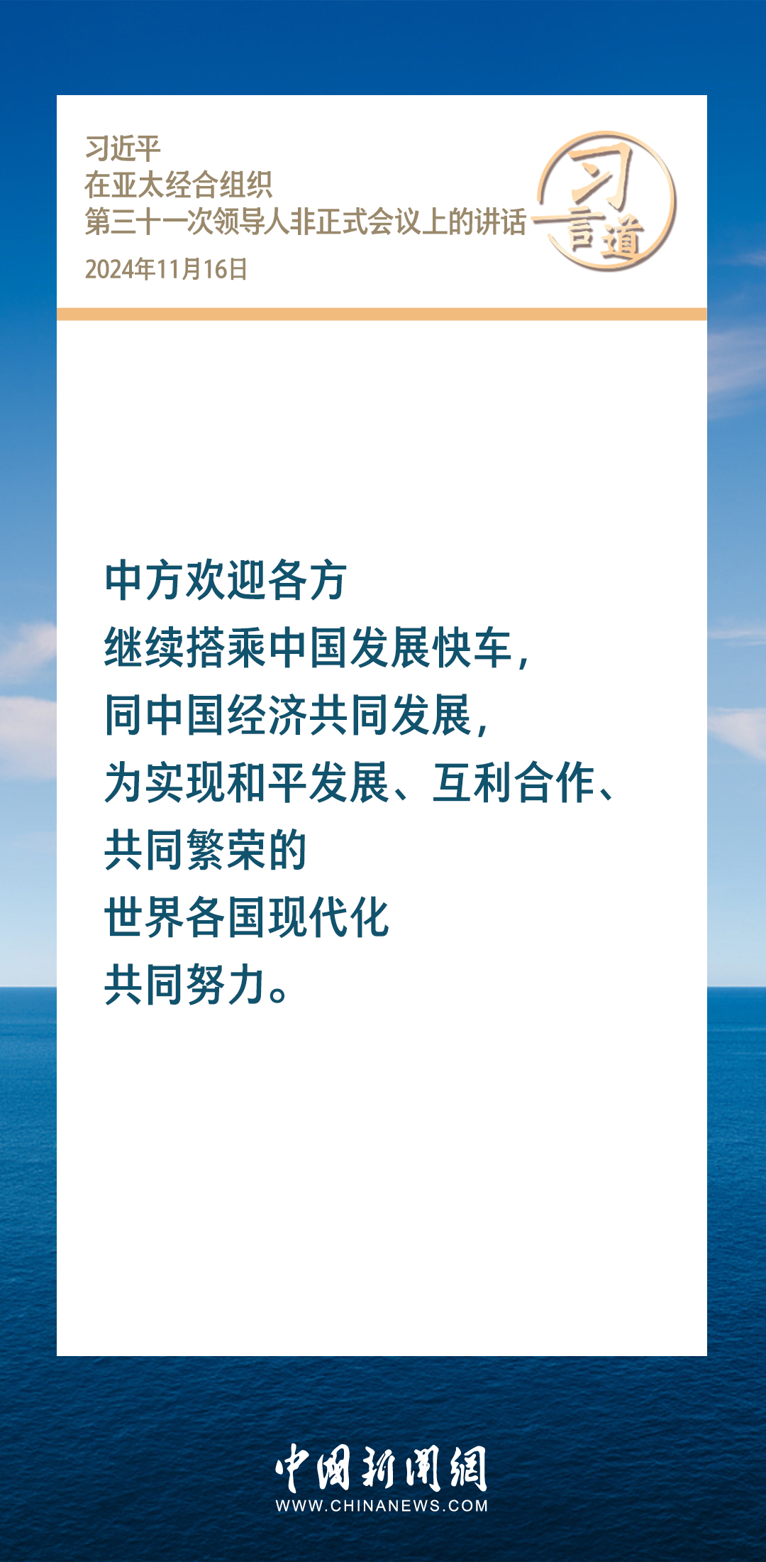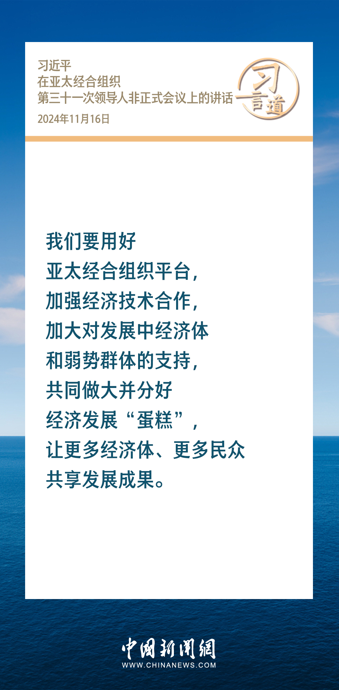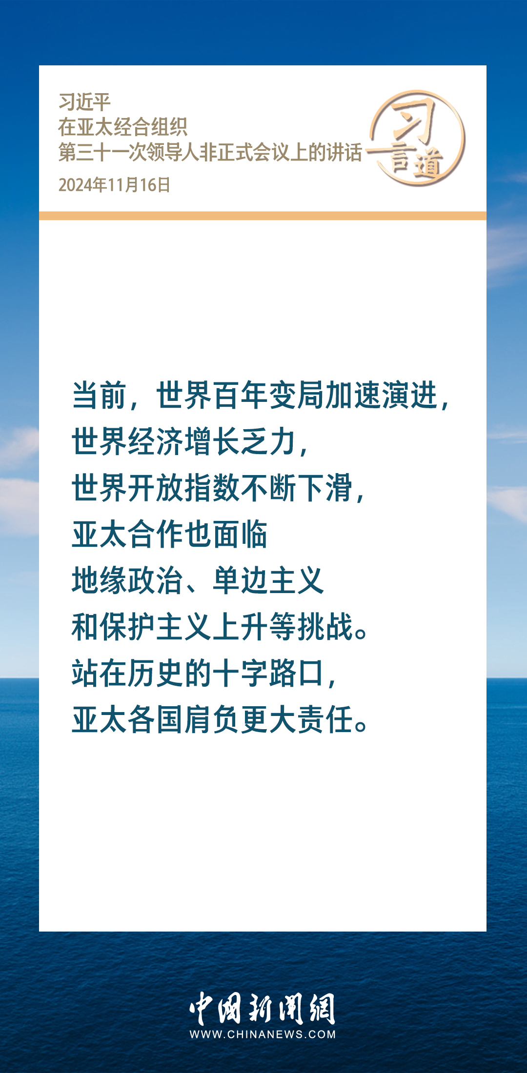 當(dāng)?shù)貢r(shí)間11月16日,國家主席習(xí)近平出席亞太經(jīng)合組織第三十一次領(lǐng)導(dǎo)人非正式會(huì)議并發(fā)表重要講話。習(xí)近平指出——