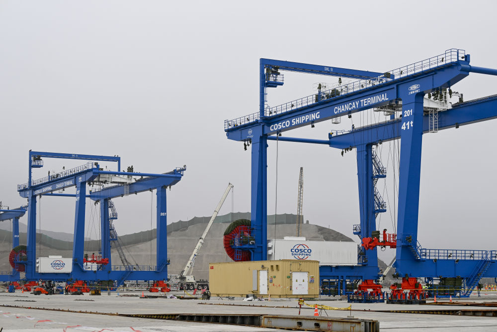 這是2024年6月21日拍攝的秘魯錢凱港碼頭操作區(qū)建設(shè)現(xiàn)場(chǎng)。