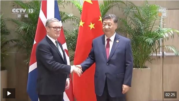 當?shù)貢r間11月18日上午,國家主席習近平在里約熱內(nèi)盧出席二十國集團領(lǐng)導人峰會期間會見英國首相斯塔默。