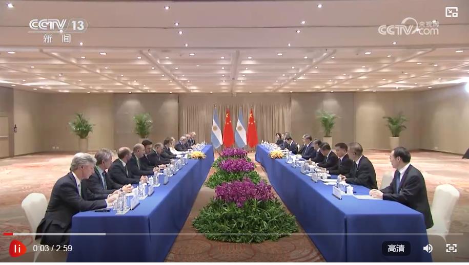 習近平指出,中阿建交半個多世紀以來,雙方堅持相互尊重、平等相待、互利共贏。中國對阿政策始終面向阿根廷全體人民,中阿合作也造福全體人民。今年是中阿建立全面戰(zhàn)略伙伴關系10周年,兩國關系處在承前啟后、繼往開來的重要節(jié)點。中方珍視兩國人民傳統(tǒng)友誼,支持阿方通過改革探索符合本國國情的發(fā)展道路,愿同阿方一道,推動中阿全面戰(zhàn)略伙伴關系長期穩(wěn)定發(fā)展,更好助力各自國家發(fā)展。
