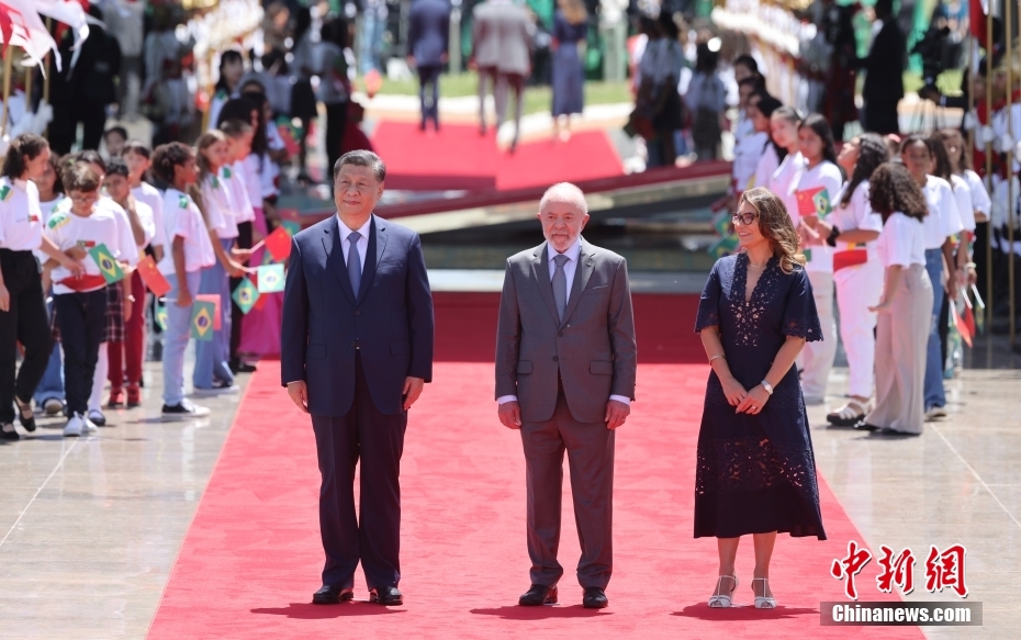 當?shù)貢r間11月20日,中國國家主席習近平同巴西總統(tǒng)盧拉舉行會談。圖為會談前,巴西總統(tǒng)盧拉在首都巴西利亞為習近平舉行隆重歡迎儀式。中新社記者 盛佳鵬 攝