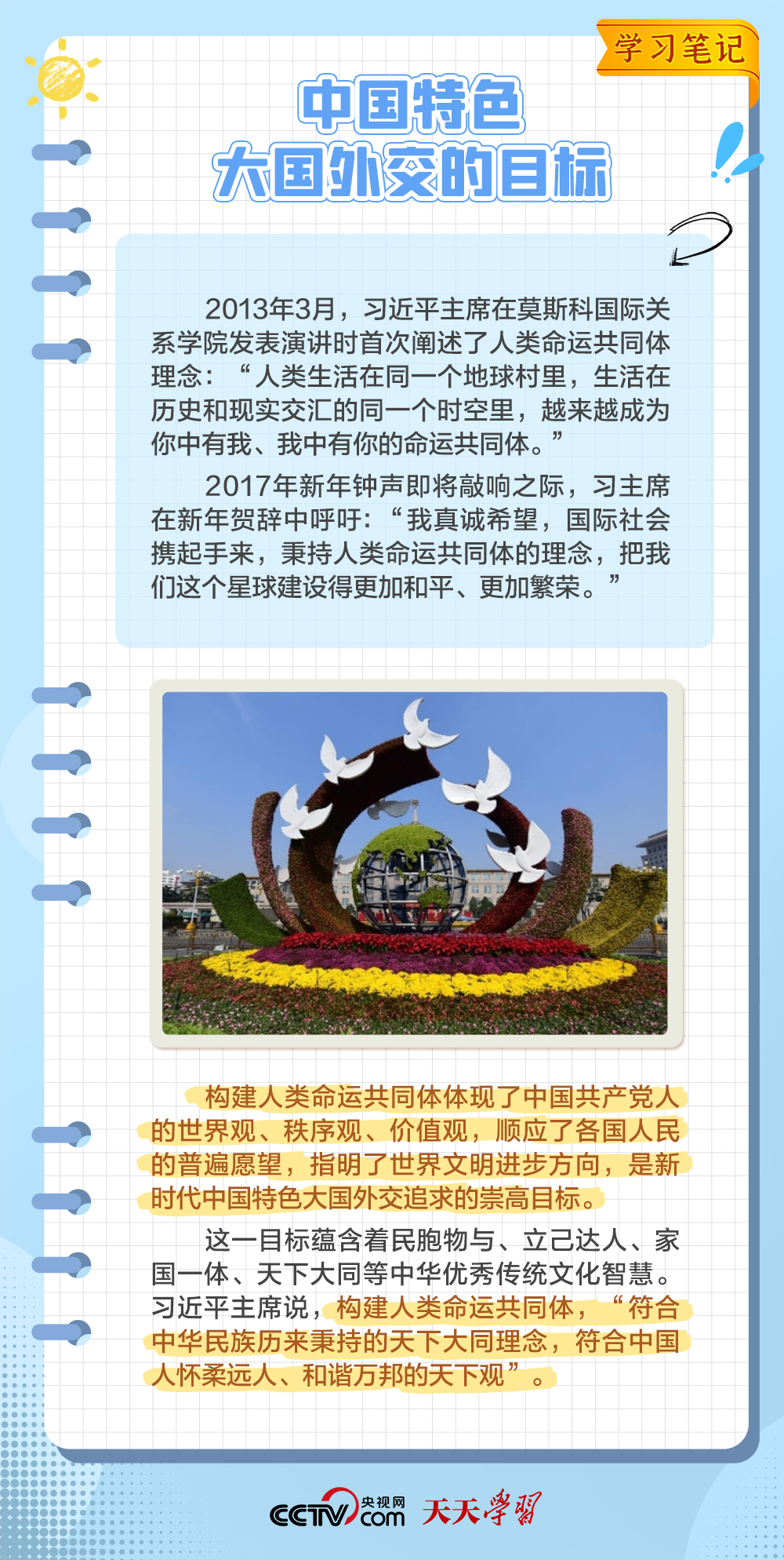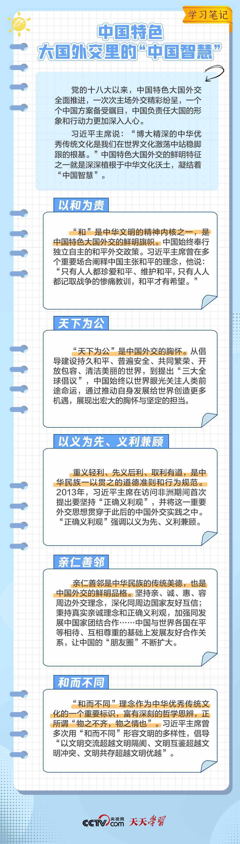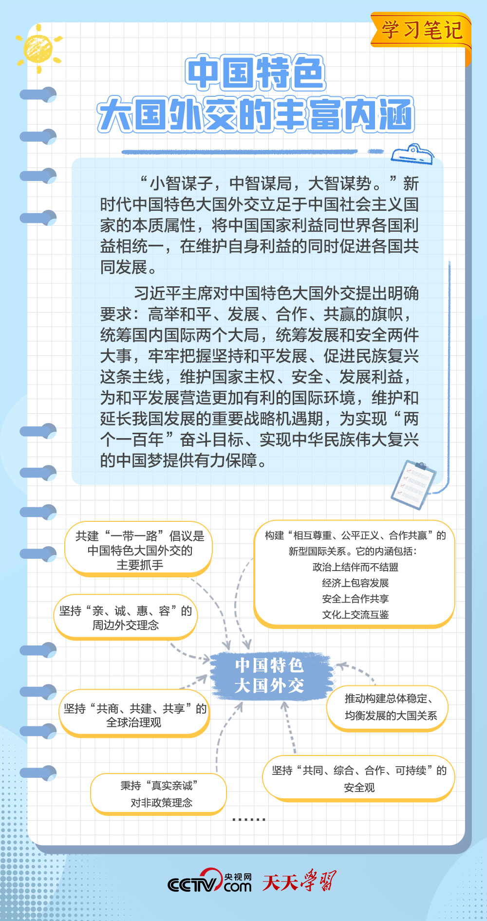 10年來,面對(duì)風(fēng)云變幻的國際形勢(shì),中國特色大國外交扎實(shí)推進(jìn),形成了全方位、多層次、立體化的外交布局,為我國高質(zhì)量發(fā)展?fàn)I造了良好外部環(huán)境。中國特色大國外交提出10周年之際,《學(xué)習(xí)筆記》特梳理其內(nèi)涵要義,與您一同感悟其中蘊(yùn)含的“中國智慧”。