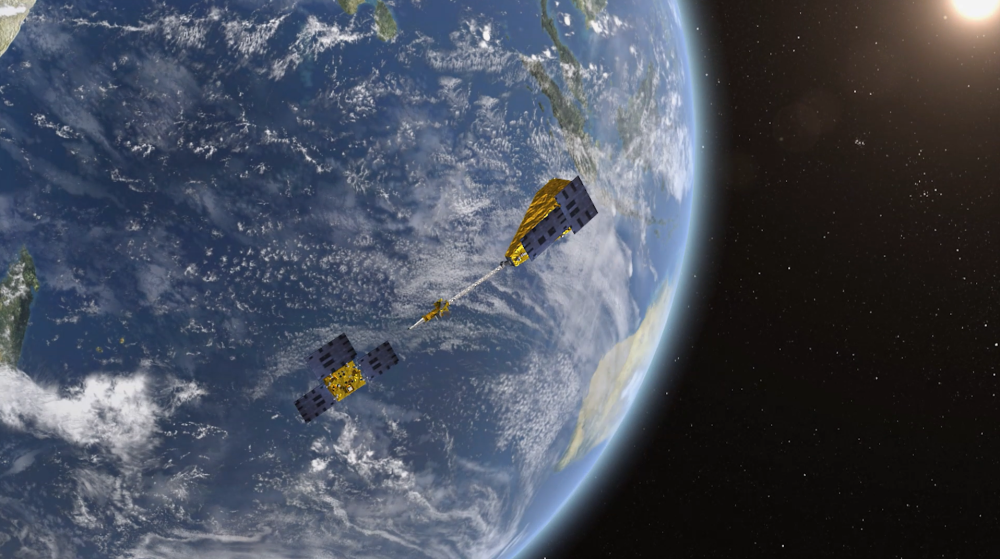 圖為“澳科一號”衛(wèi)星在軌示意圖(右為A星,左為B星)。