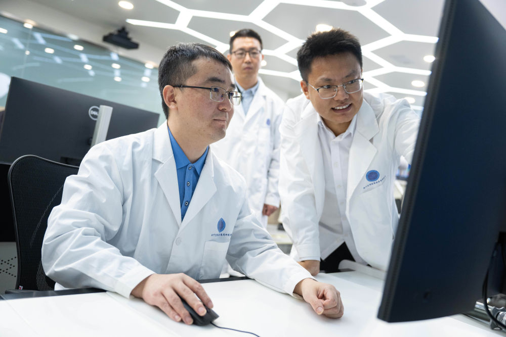 2024年12月4日,“澳科一號”衛(wèi)星項目助理研究員尹亮(左一)與同事交流。