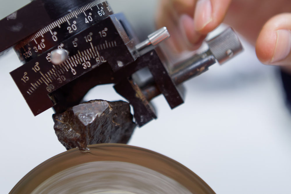 2019年10月31日,學生在月球與行星科學國家重點實驗室(澳門科技大學)切割隕石。