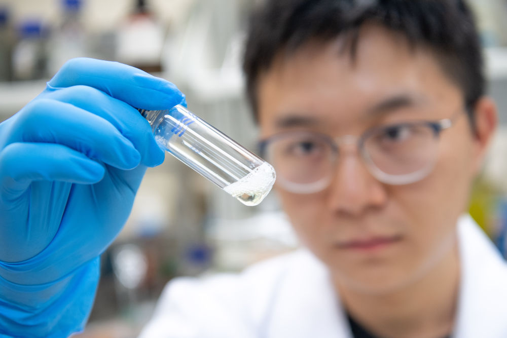2019年11月1日,在中藥質(zhì)量研究國家重點實驗室(澳門大學),學生觀察藥物樣品的溶解狀態(tài)。