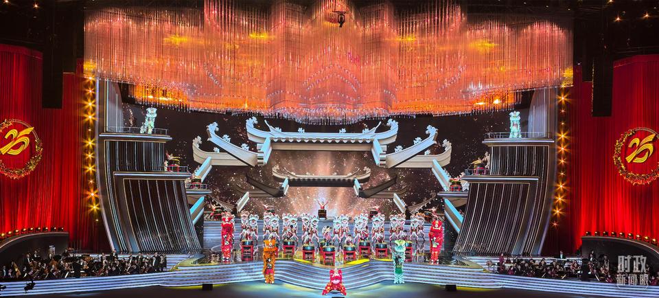 △慶祝澳門回歸祖國(guó)25周年文藝晚會(huì)現(xiàn)場(chǎng)燈光璀璨,歡樂(lè)喜慶。(總臺(tái)央視記者范學(xué)禹拍攝)