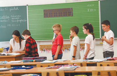匈中雙語學(xué)校教師正在批改作業(yè)。本報記者 劉仲華攝