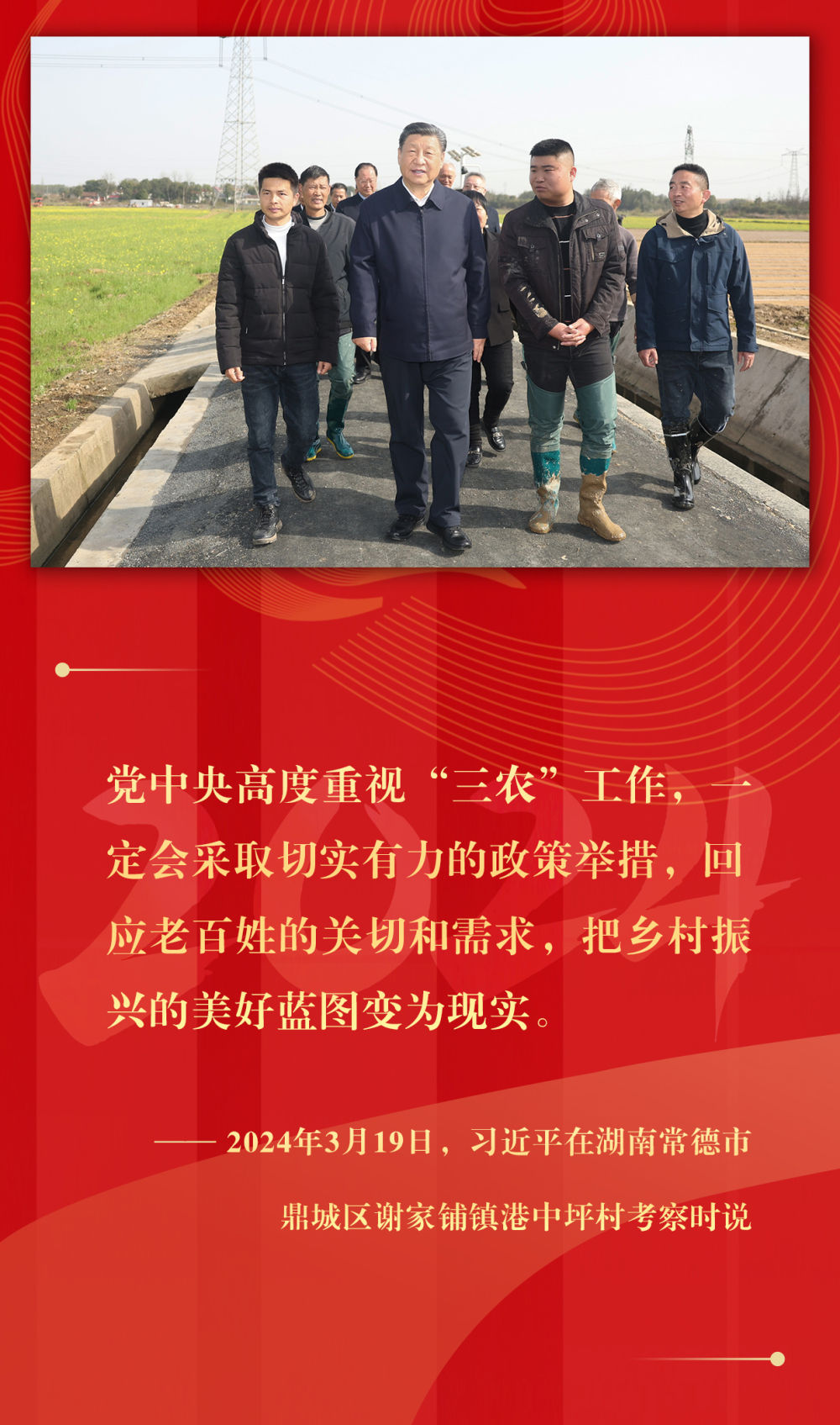 堅(jiān)持城鄉(xiāng)融合發(fā)展、持續(xù)深化農(nóng)村改革、支持強(qiáng)農(nóng)惠農(nóng)富農(nóng)、拓寬農(nóng)民增收渠道、強(qiáng)化農(nóng)業(yè)科技和裝備支撐、確保糧食和重要農(nóng)產(chǎn)品穩(wěn)產(chǎn)保供……2024年,習(xí)近平總書(shū)記在基層考察期間,持續(xù)關(guān)注鄉(xiāng)村振興,多次提出重要指示,落子關(guān)鍵處、科學(xué)謀布局,千方百計(jì)推動(dòng)農(nóng)業(yè)增效益、農(nóng)村增活力、農(nóng)民增收入。