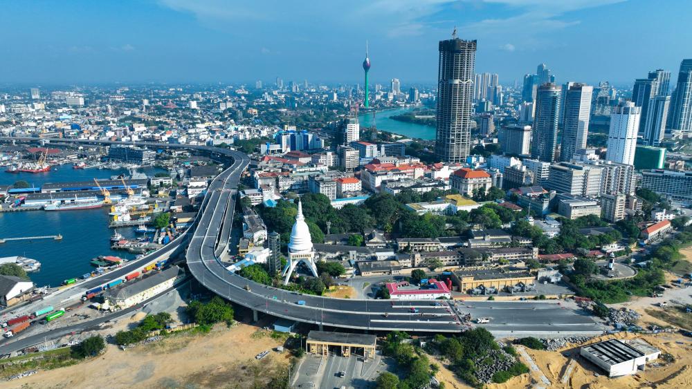 這是2025年1月13日拍攝的斯里蘭卡科倫坡風(fēng)光(無人機照片)。新華社發(fā)