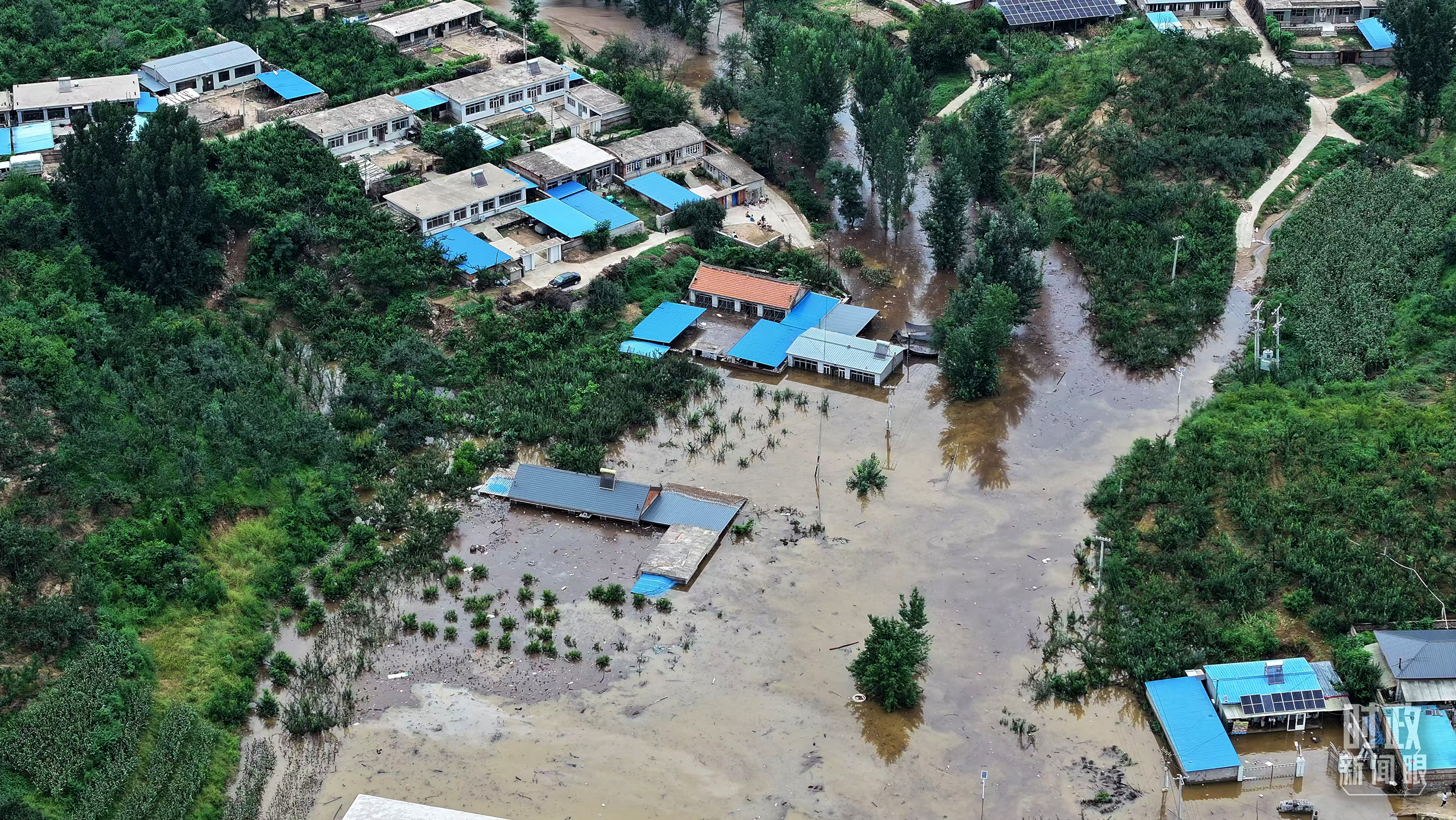 被洪水淹沒的祝家溝村。