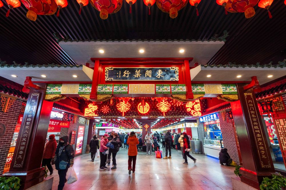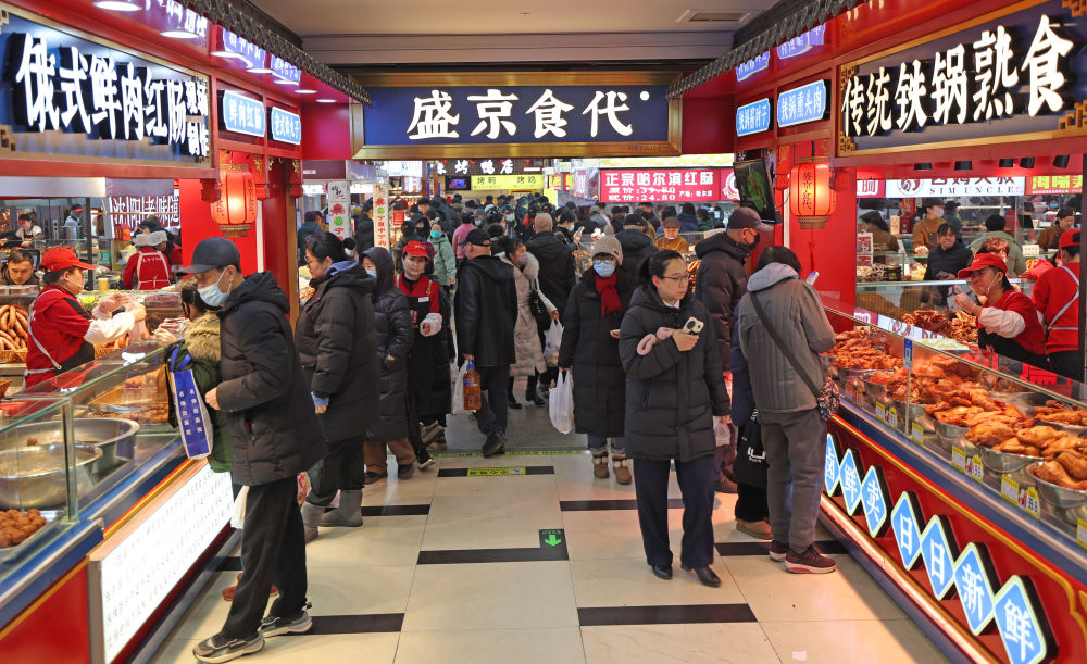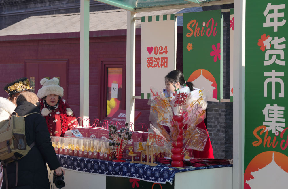 2025年1月22日,游客在沈陽(yáng)故宮非遺年貨市集游覽消費(fèi)。