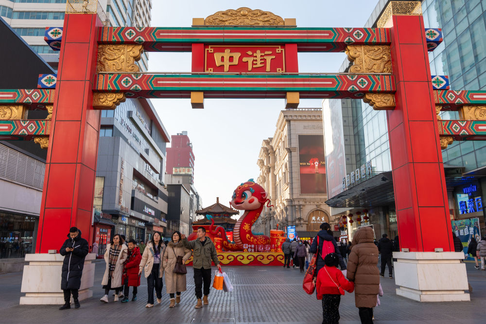 2025年1月22日,游客在沈陽(yáng)中街長(zhǎng)安寺胡同小吃街游玩。