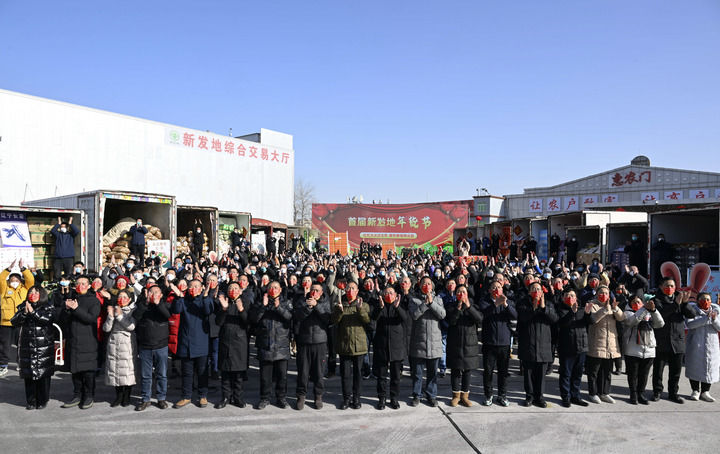 2023年1月18日,北京新發(fā)地農(nóng)產(chǎn)品批發(fā)市場(chǎng)留守的商戶和采購(gòu)年貨的群眾同習(xí)近平總書(shū)記視頻連線。