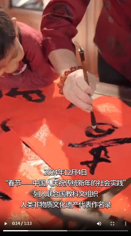 2024年12月,春節(jié)被列入聯(lián)合國(guó)教科文組織人類(lèi)非物質(zhì)文化遺產(chǎn)代表作名錄。春節(jié)是中華民族的盛大節(jié)日,是我國(guó)內(nèi)涵最深厚、內(nèi)容最豐富、參與人數(shù)最多、影響最廣泛的傳統(tǒng)節(jié)日。