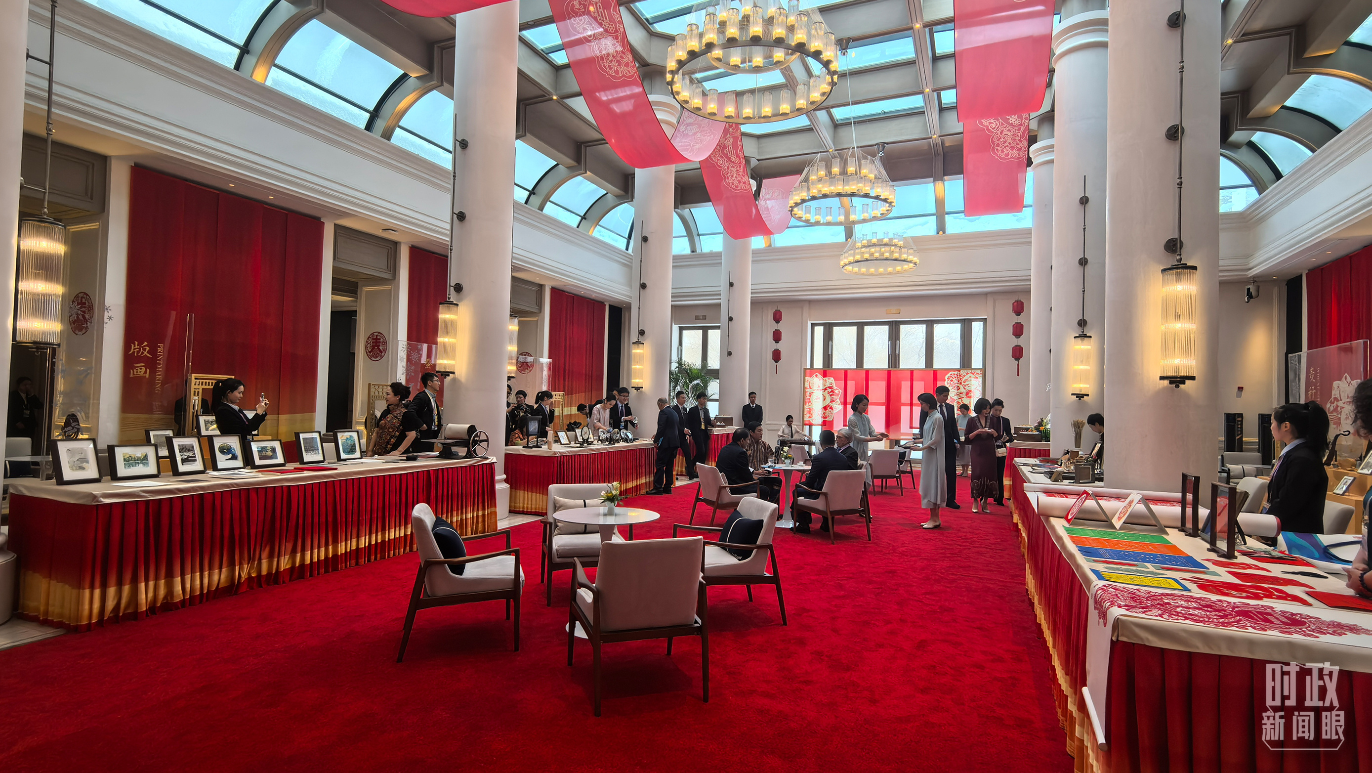 歡迎宴會(huì)開始前的黑龍江非物質(zhì)文化遺產(chǎn)展示。(總臺(tái)央視記者史偉、央廣記者馬喆拍攝)
