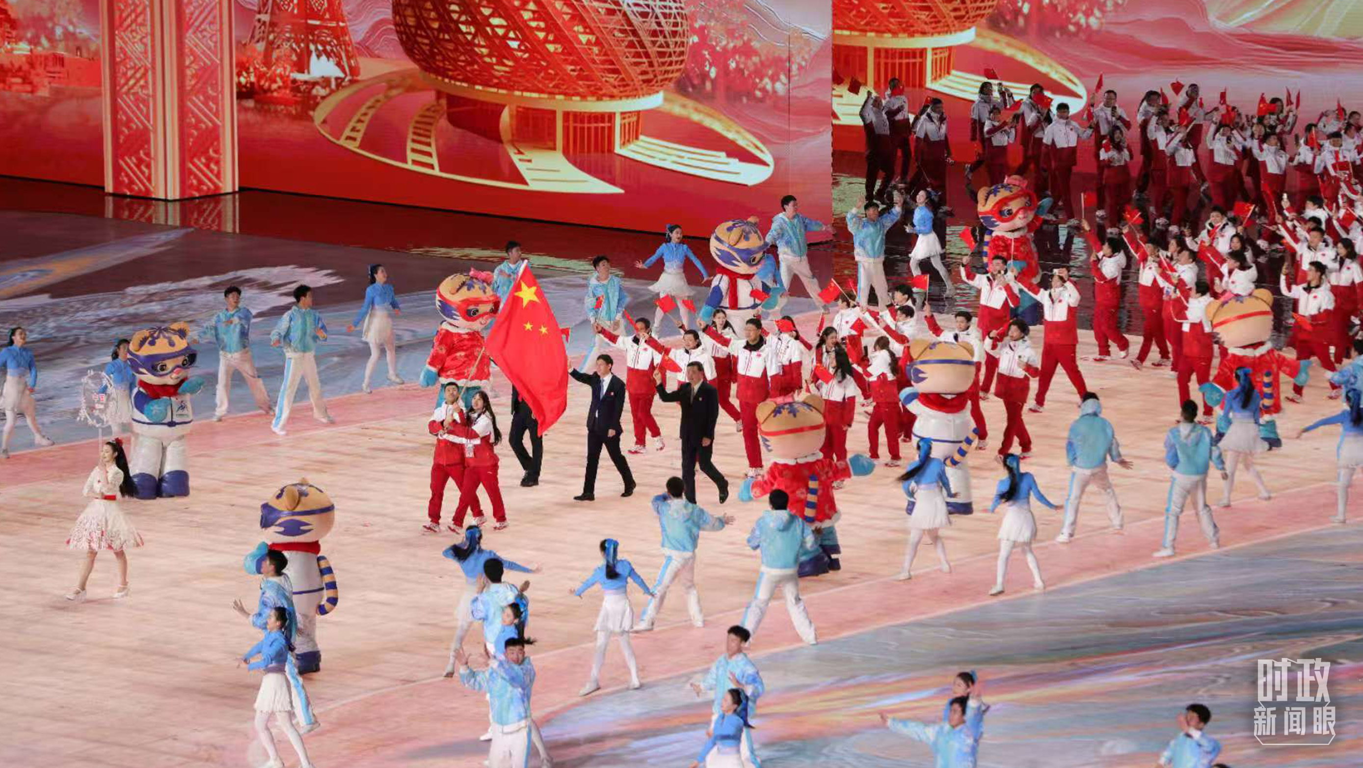 哈爾濱亞冬會(huì)開幕式上,中國體育代表團(tuán)入場。(總臺(tái)央視記者魏幫軍拍攝)