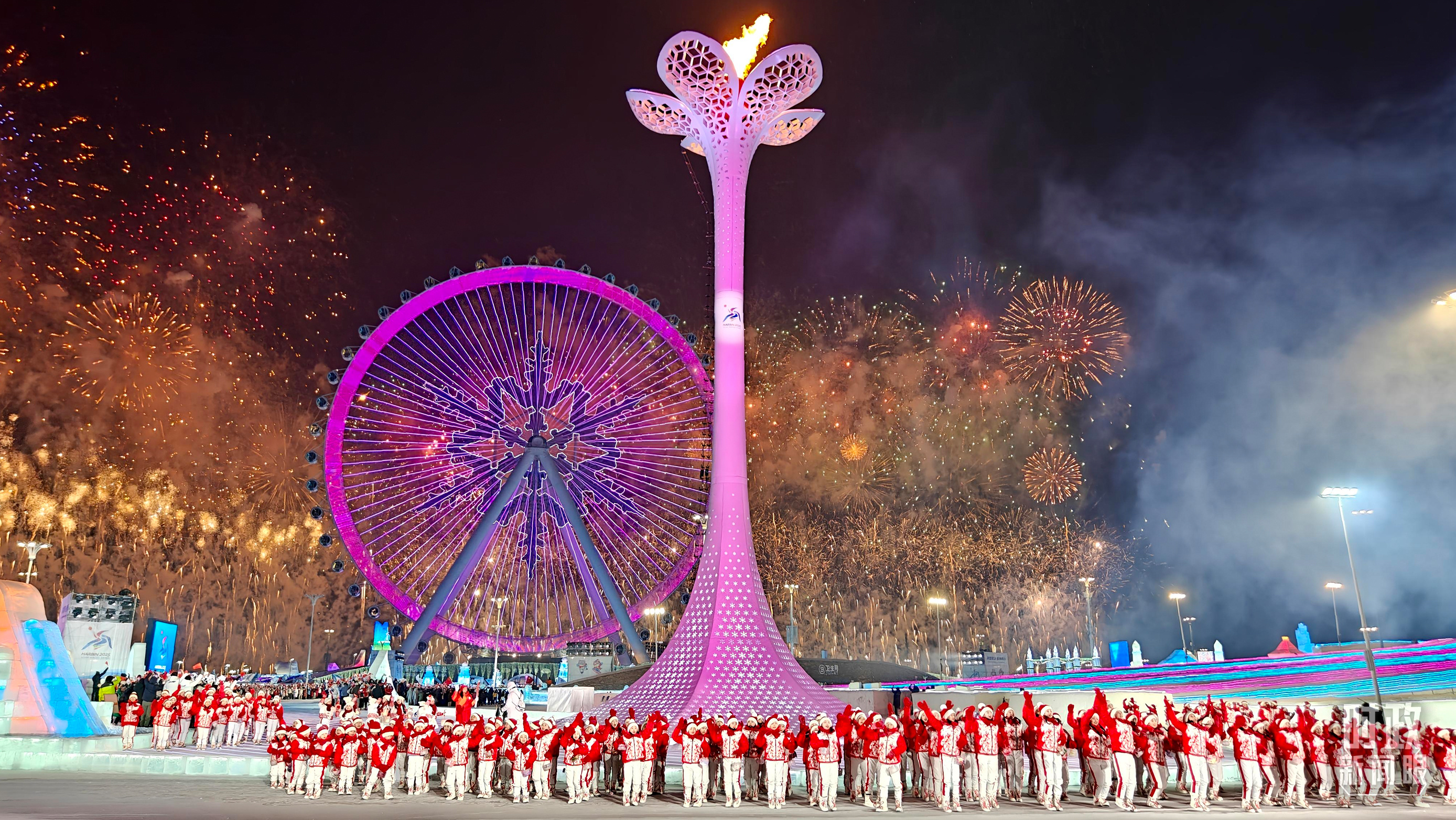 哈爾濱亞冬會(huì)主火炬點(diǎn)燃。(總臺(tái)記者任秋宇拍攝)