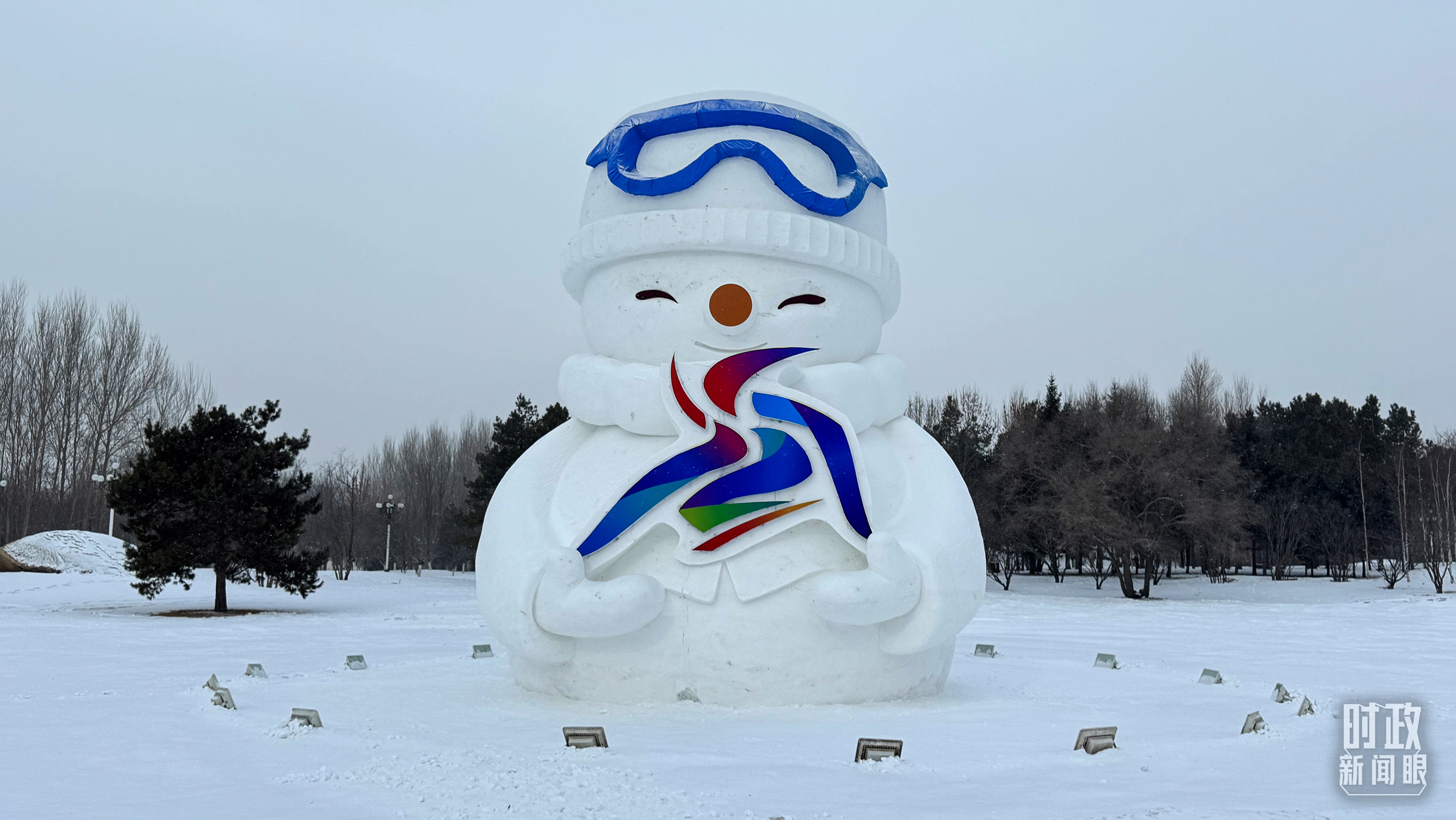 裝飾有亞冬會(huì)會(huì)徽元素的雪人。(總臺(tái)央視記者蔣碩拍攝)