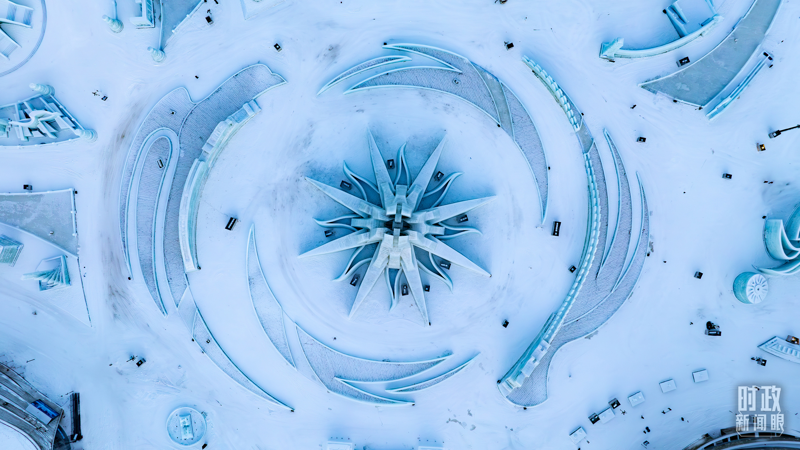哈爾濱冰雪大世界“雪花”圖案。(總臺(tái)記者邵沖拍攝)
