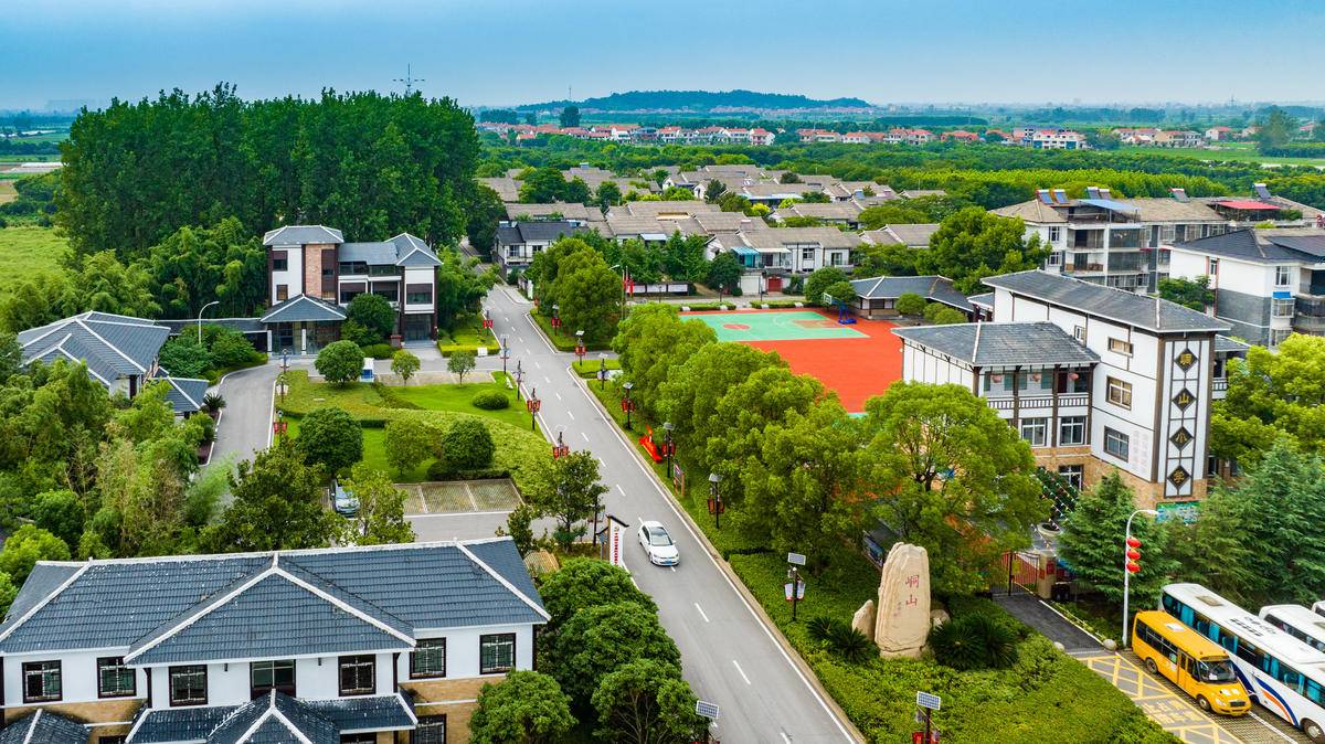鳥瞰鄂州市峒山村,村容整潔、綠樹成蔭。(湖北日報全媒記者 薛婷 攝)