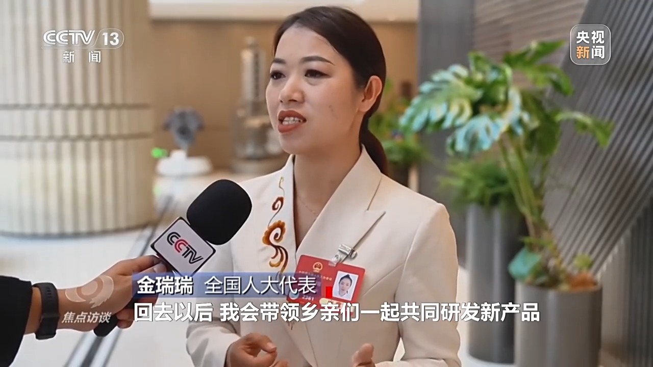 全國人大代表 金瑞瑞:方向和路徑都非常清晰,回去以后,我會帶領(lǐng)鄉(xiāng)親們一起共同研發(fā)新產(chǎn)品,把非遺手工的技藝傳承好和發(fā)揚好,帶著鄉(xiāng)親們共同賺錢,把全國兩會擘畫的美好愿景轉(zhuǎn)化為實實在在的成績和收獲。