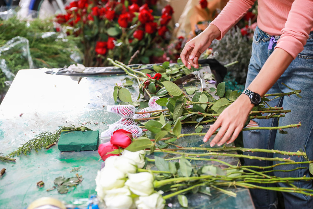 2019年2月14日,在泰國(guó)曼谷帕空鮮花市場(chǎng)的一家花店,工作人員將從云南進(jìn)口的鮮花制作成花束和花盒。東南亞是云南花卉的傳統(tǒng)市場(chǎng),在“一帶一路”倡議推動(dòng)下,中國(guó)與東南亞國(guó)家相互開(kāi)放的產(chǎn)業(yè)合作,為雙方商貿(mào)活動(dòng)注入新動(dòng)力。隨著昆曼國(guó)際大通道打通,經(jīng)過(guò)采摘、分級(jí)、修枝、包裝、拍賣(mài)等過(guò)程,云南鮮花只需近40小時(shí)的冷鏈運(yùn)輸便可抵達(dá)曼谷。