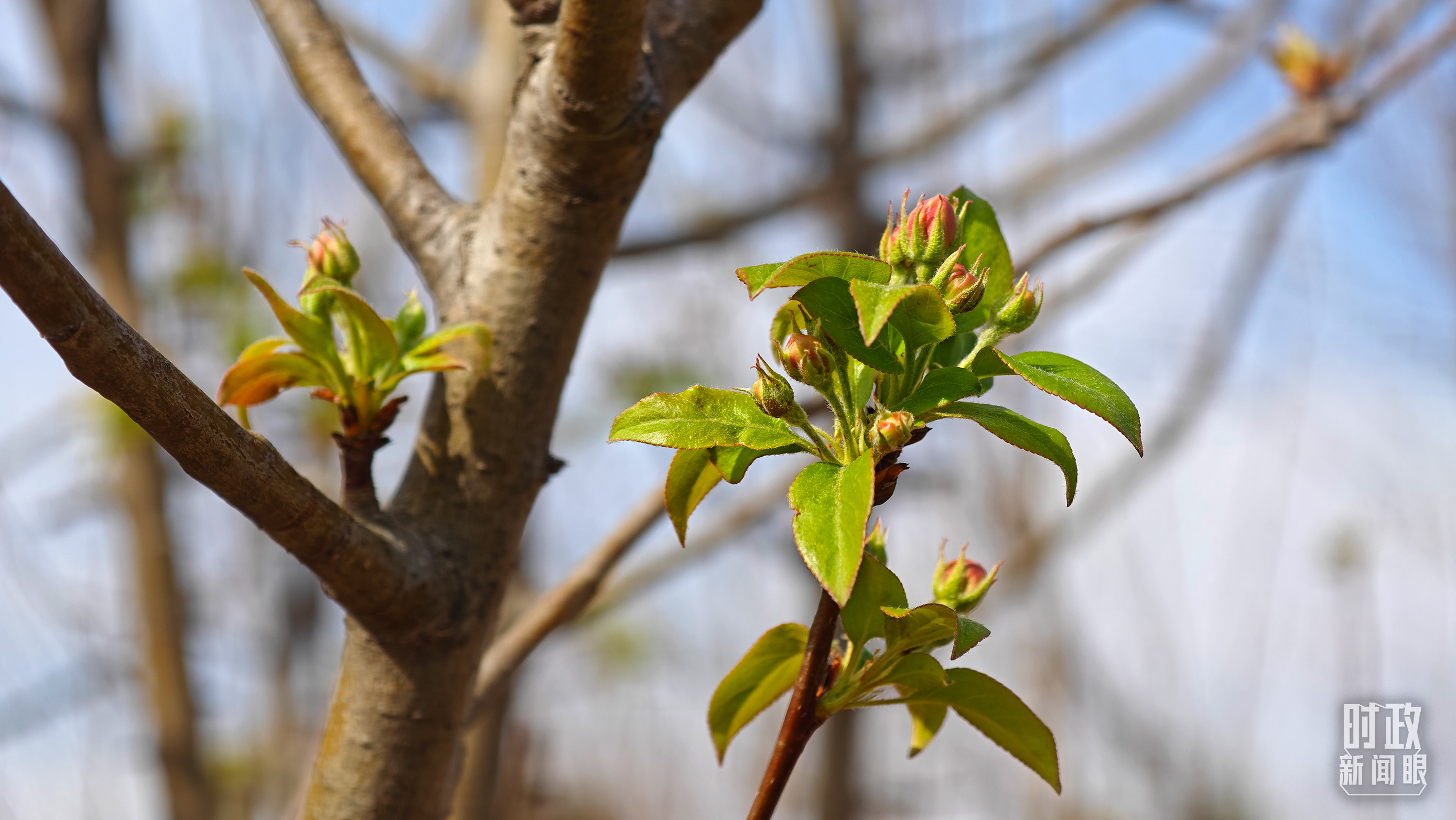 △永定河畔植樹點(diǎn),春意上枝頭。(總臺(tái)央視記者胡瑋、程鋮拍攝)