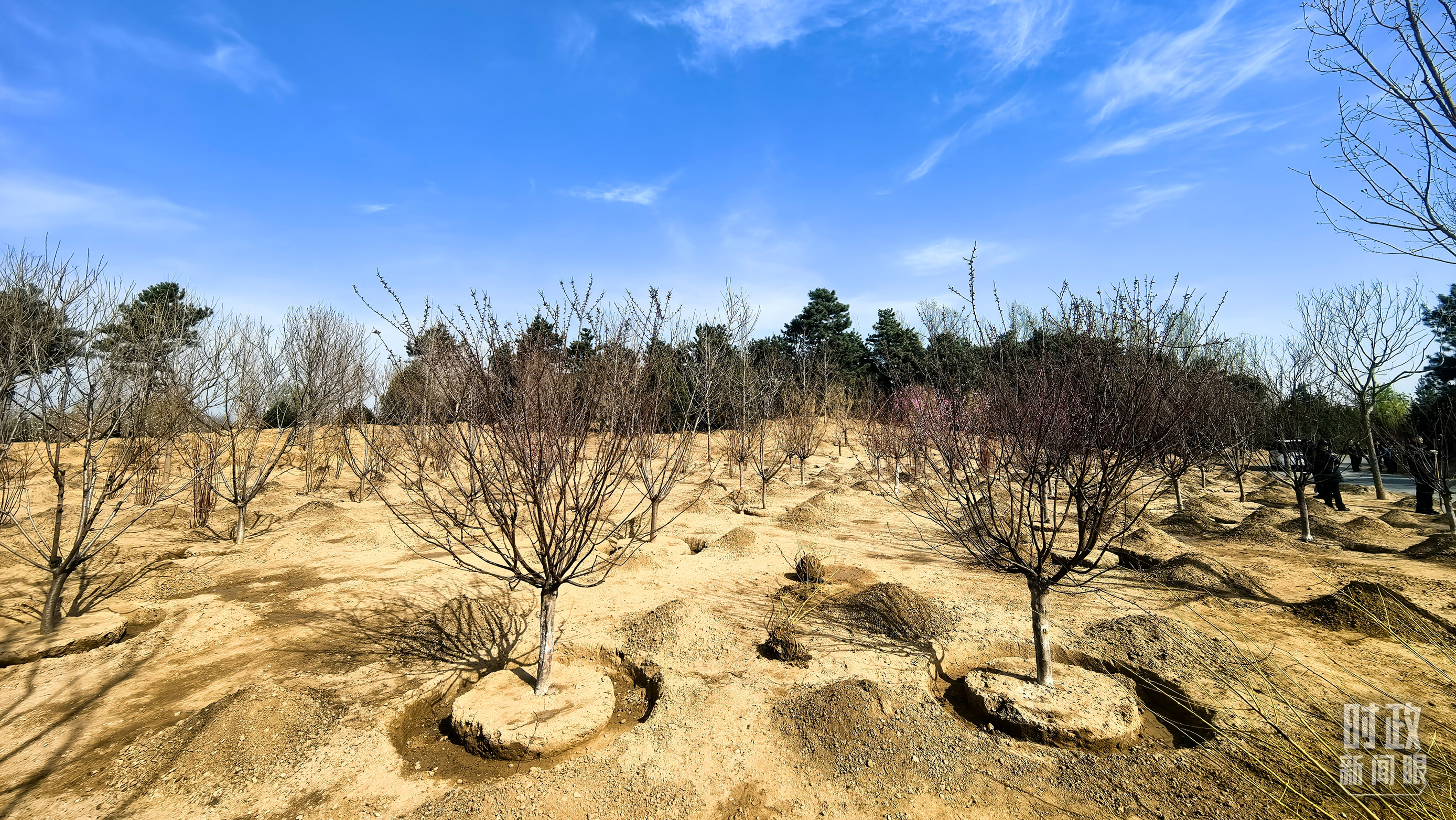 △2025年4月3日,永定河畔的植樹點(diǎn)。(總臺(tái)央視記者劉岳拍攝)