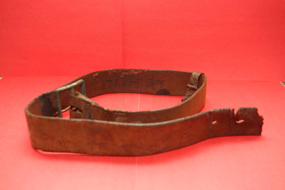 △陳列在陸軍第75集團軍某旅榮譽室的半截皮帶(復(fù)制品)。
