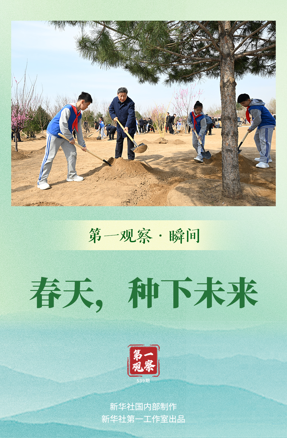 今天種下新綠,小小樹苗將長成參天大樹、連片成林,祖國大地綠意盎然、生機(jī)勃發(fā)。今天播撒希望,孩子們終將成為社會發(fā)展的棟梁之才,強國建設(shè)、民族復(fù)興更有接續(xù)奮斗的力量。