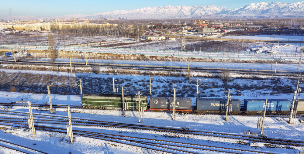 2024年12月25日,一列中歐班列經(jīng)霍爾果斯口岸駛向哈薩克斯坦(無人機(jī)照片)。霍爾果斯口岸地處伊犁哈薩克自治州、毗鄰哈薩克斯坦,是古絲綢之路北道上的千年驛站,也是近現(xiàn)代對(duì)外開放的百年口岸,更是我國面向中亞、西亞乃至歐洲的重要物流通道。2024年,該口岸中歐(中亞)班列開行量達(dá)8730列,同比增長12.5%;貨物過貨量達(dá)1208.4萬噸,同比增長10.9%;通行班列線路總數(shù)超過80條,輻射境外18個(gè)國家的46個(gè)城市。