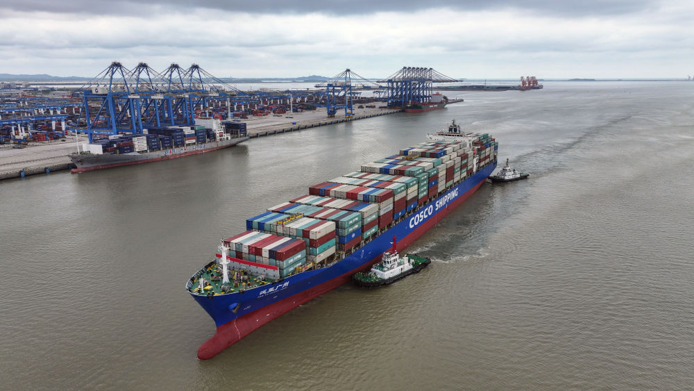 2024年5月19日,一艘海輪在廣西欽州港碼頭靠泊(無人機(jī)照片)。欽州港是北部灣港的組成部分,也是中國西南地區(qū)通往東盟的重要出海口。西部陸海新通道利用鐵路、公路、水運(yùn)等多種運(yùn)輸方式,由重慶一路向南,經(jīng)廣西北部灣出海通達(dá)世界各地。截至2025年1月1日,北部灣港總航線達(dá)80條,其中外貿(mào)航線49條,基本實(shí)現(xiàn)國內(nèi)主要港口和東南亞、東北亞主要港口全覆蓋。