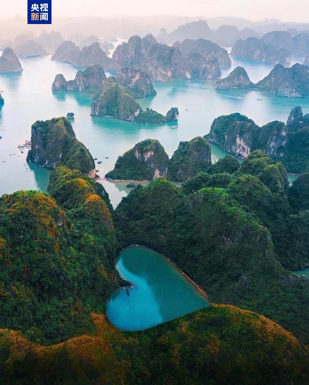 北部的下龍灣,數(shù)千島嶼星羅棋布,喀斯特山峰拔地而起,以“海上桂林”之姿聞名于世。