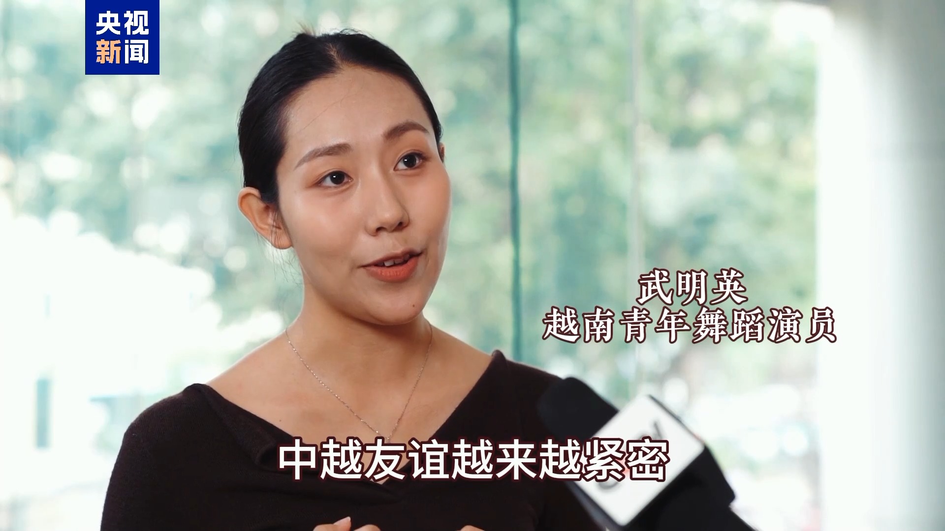 武明英 越南青年舞蹈演員:中越友誼越來(lái)越緊密。青年的留學(xué)生們或者是中國(guó)朋友來(lái)到越南,能看到我們?cè)侥系乃囆g(shù)或者是我們的文化。