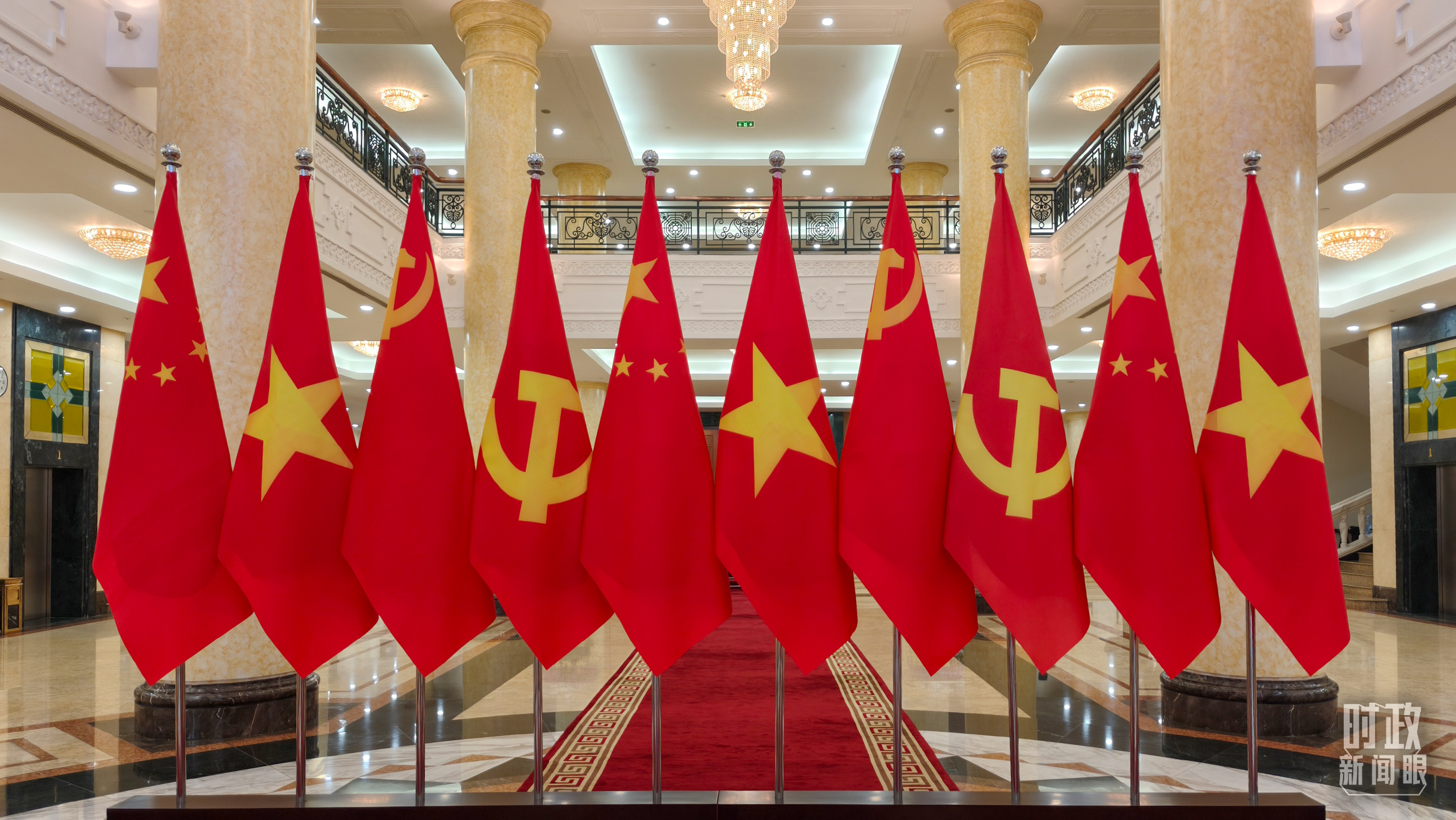 越共中央駐地?cái)[放的中越兩黨兩國旗幟。(總臺央視記者楊立峰拍攝)
