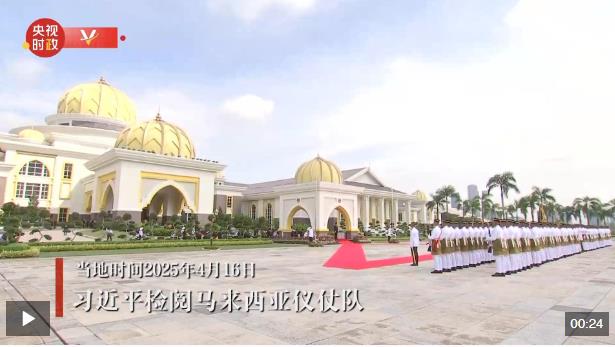 當(dāng)?shù)貢r間4月16日上午,國家主席習(xí)近平檢閱馬來西亞儀仗隊。