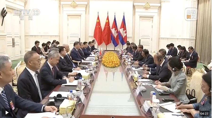 習近平指出,中柬兩國是友好鄰邦,更是鐵桿朋友。構(gòu)建中柬命運共同體是歷史的選擇、人民的選擇。當前,中柬兩國都處在國家發(fā)展的關(guān)鍵階段,雙方要心系人民福祉,胸懷人類進步,在推進各自現(xiàn)代化進程中,為構(gòu)建人類命運共同體樹立典范,攜手做世界百年變局中的和平力量、穩(wěn)定力量、進步力量。