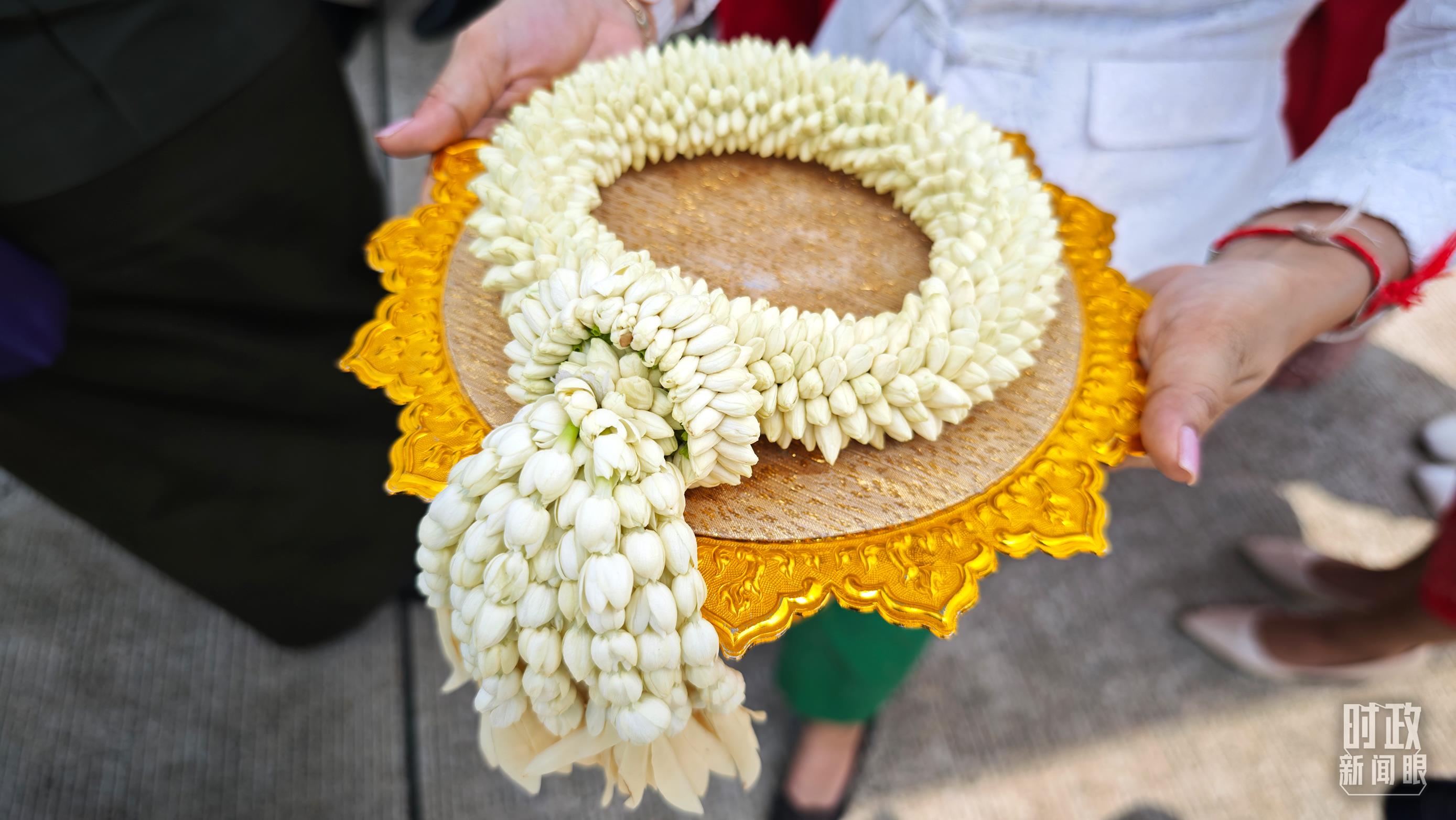 柬埔寨王室珍娜公主向習主席獻上的茉莉花手環(huán)。(總臺央廣記者潘毅拍攝)
