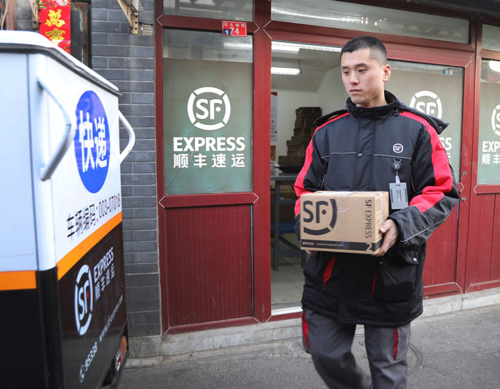 北京前門石頭胡同快遞站點(diǎn)“快遞小哥”劉闊在整理包裹(2019年2月1日攝)。新華社記者 李德欣 攝