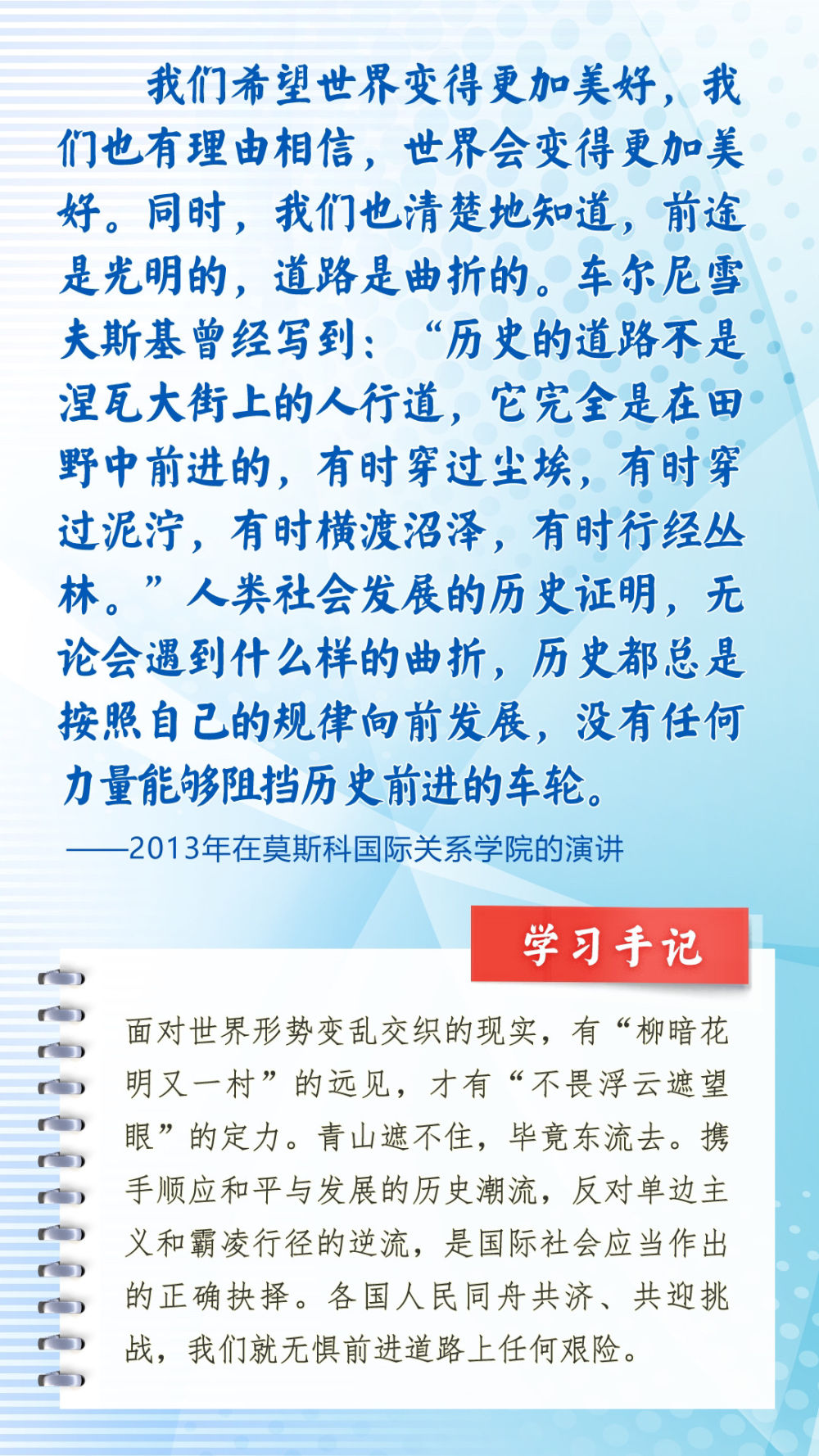 我們一起來學習品讀這些飽含哲思的論述,從中感悟新時代中俄關系在復雜的外部環(huán)境下堅毅前行之道,感悟習近平主席作為大黨大國領袖、世界級領袖的時代擔當與天下情懷。