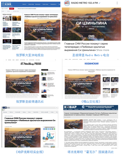 俄羅斯大亞洲電視臺、圣彼得堡Radio Metro電臺、俄羅斯圣彼得通訊社、《喀山文化報》《哈薩克斯坦實業(yè)報》、塔吉克斯坦“霍瓦爾”國家通訊社等亞歐地區(qū)多家主流媒體播發(fā)相關(guān)報道。