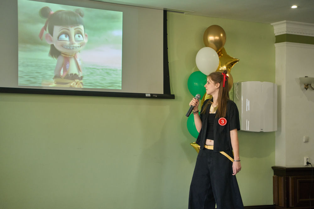 2025年4月10日,第24屆“漢語橋”世界大學(xué)生中文比賽俄羅斯賽區(qū)預(yù)選賽10日在符拉迪沃斯托克舉行。這是選手為電影《哪吒2》進(jìn)行配音表演。