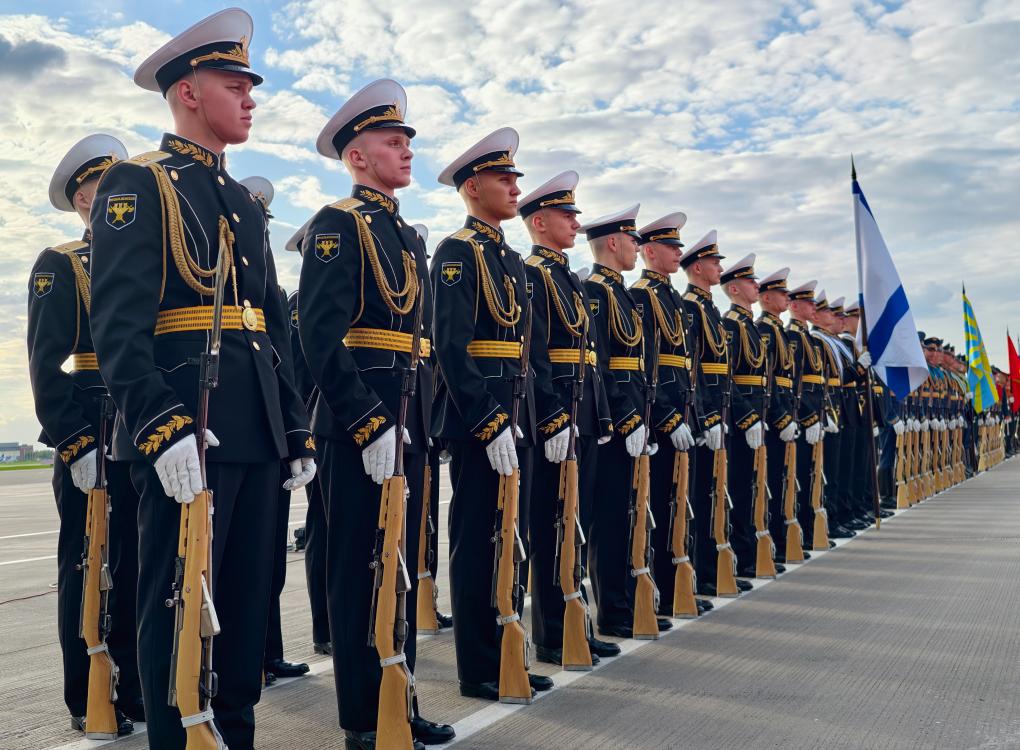 俄方在機(jī)場(chǎng)舉行隆重迎接儀式。軍樂團(tuán)奏中俄兩國(guó)國(guó)歌。習(xí)近平檢閱儀仗隊(duì)并觀看分列式。