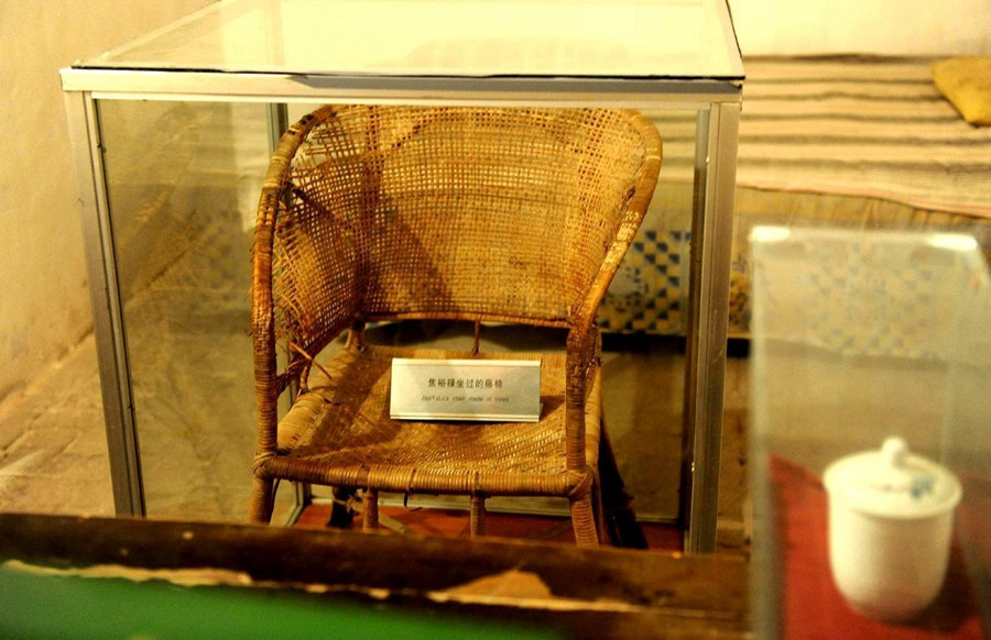這是在河南省蘭考縣焦裕祿同志紀(jì)念館內(nèi)拍攝的焦裕祿曾用過(guò)的藤椅(2014年5月5日攝)。新華社記者 朱祥 攝