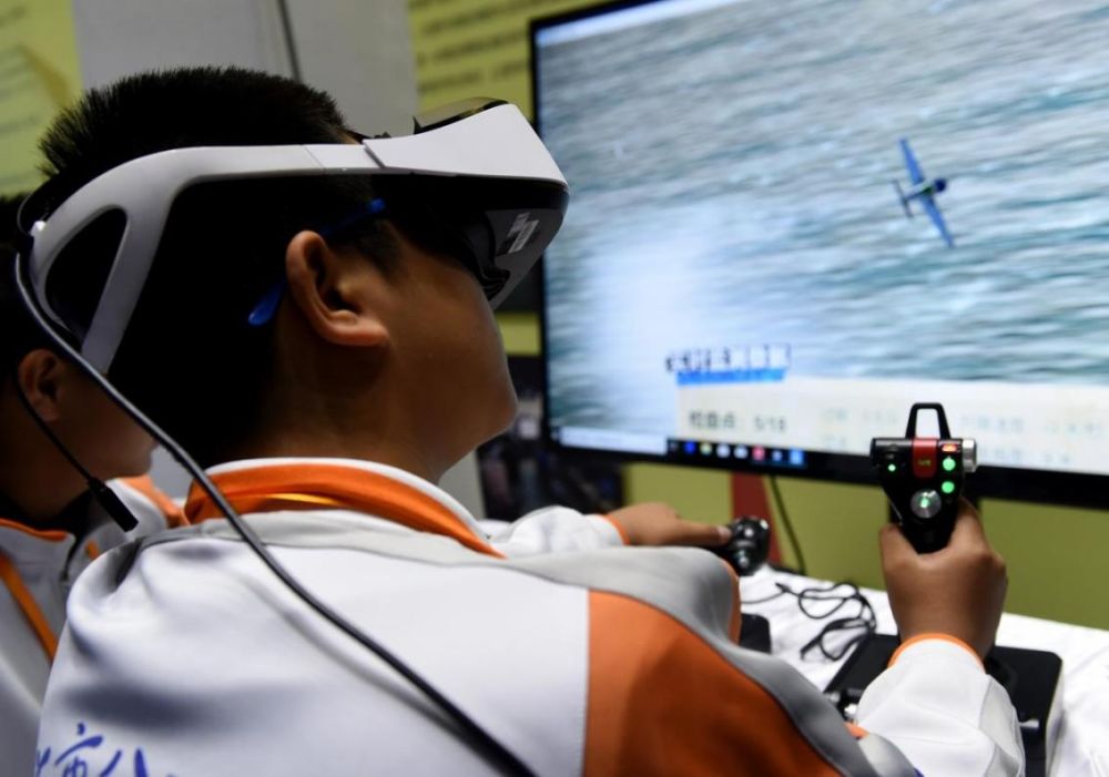 北京市八一學校的學生在北京市中小學生特色科技活動展示上體驗VR技術(2018年11月24日攝)新華社記者 羅曉光 攝。